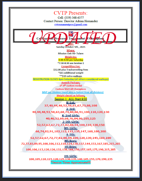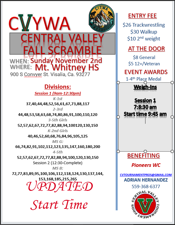 2/21/26: CVYWA Masters Championships @ Frontier HS